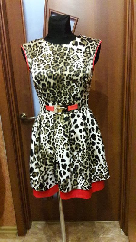 Молодежное платье с леопардовым принтом. Юбка конфетка двойная. ткань полированный хлопок, слегка стрейч.