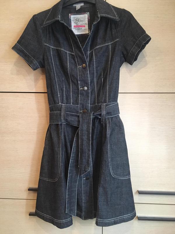 Джинсовое платье черного цвета Broadway размер XS-S. Модель приталеного силуэта, расклешенная юбка на кокетке, пояс. Прекрасно подойдет для работы и для прогулки. Очень хорошо подчеркивает фигуру. Длина 95см, ширина плеч-35 см, ширина талии- 35 см. Полуобхват груди 46 см, длина по спинке от воротника до талии (до начала кокетки на талии) - 39 см
