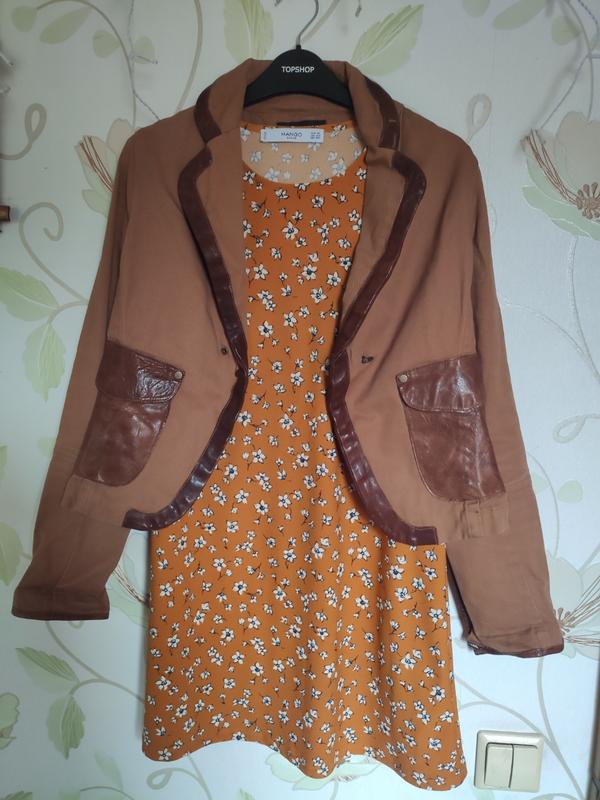 Готовый наряд. Платье+пиджак. Только натуральный материал! Платье - вискоза (Mango), пиджак - котон со вставками натуральной кожи (Minus). Крой платья свободный , рукава клёш, их можно присобрать и завязать. Смотрится стильно, хорошо подходит под кеды или кроссовки. Пиджак также суперово смотрится с джинсами. Размер S (34-36) Хотя на платье указано xs, оно все же на S-ку. Если возникнут вопросы - задавайте.