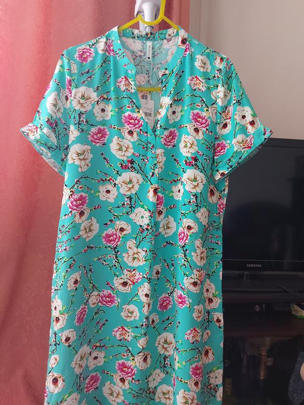 Плаття бірюзового кольору, великі квіти . легке , з натуральної тканини.р. L, CHICOREE