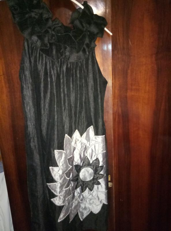 платье-туника, нарядное, ткань шелковая, на подкладке, украшено контрастным цветком внизу, по горловине прикольный волан Доставки из точки выдачи ROZETKA осуществляются один раз в неделю по СУБОТАХ!!! Отправка посылок УКРПОПТОЮ или НОВОЙ ПОШТОЮ происходит ежедневно помимо НЕДИЛИ!!!