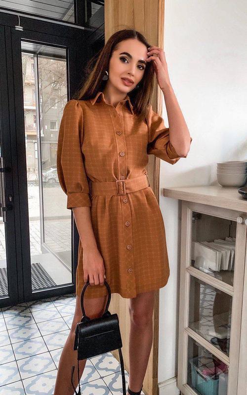 Платье рубашка в клетку с объемными рукавами «Соня»❣️ ▫️Размер: S, M ▫️Ткань: костюмный креп в клеточку ▫️Цвет: серый, кэмел 🛒ОТПРАВКА заказа 1-5 раб. дня! ⠀ Цена 910 грн