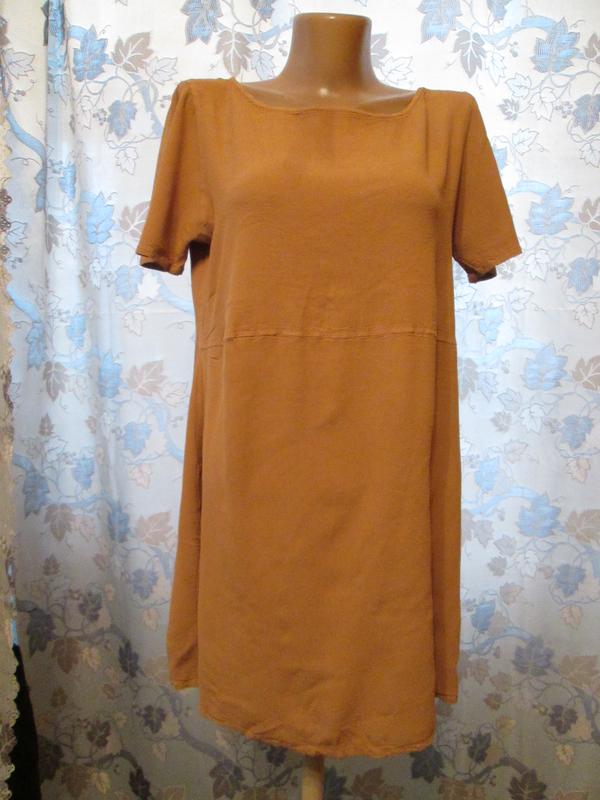 Платье карамельного цвета в очень хорошем состоянии, дефектов нет. Состав ткани - вискоза, приятное к телу. Можно носить как платье как тунику. Размер S(44) подойдет на не большую М (46) Длина - 75 см ПОГ - 46 см ПОТ - 46 см ПОБ - 51 см плечи - 38 см рукав - 21 см