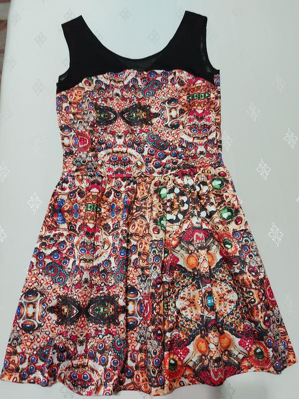 Платье гламурное. Принт - ювилирные украшения. Ткань - коттон, полиэстер, эластан. Р. 38 . Короткое.