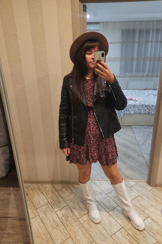 Стильное платье, классный цветочный принт. Резинка под грудь и на рукавах. Немножко длинее сзади. Низ платья сделан рюшами. Плотная ткань. Довжина 91 Талія 34 тянеться до 52 Рукав 58