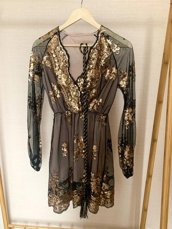 Ніжна сукня з паєтками. Розмір с-м. Стан ідеальний, одягалась 1 раз. Довжина 88 см, підкладка 73, ОГ 92-100 см, ОТ 62-90, ОБ 100 см