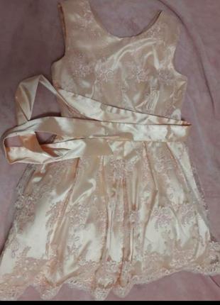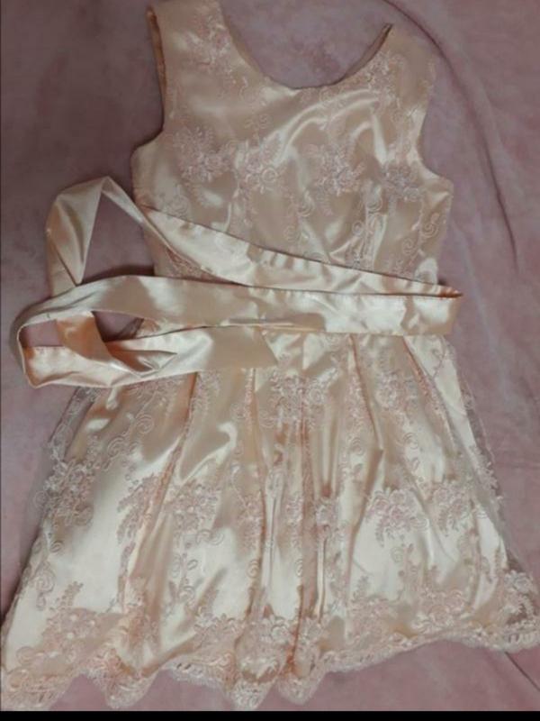 Плаття в ідеальному стані ні разу не одягнуте так як не вгадала з розміром має з низу підкладку з сітки за рахунок чого має об'єм з боку має замок в комплекті є стрічка розмір не відповідає в казаному на ньому маломірить десь на 1-2 розміри