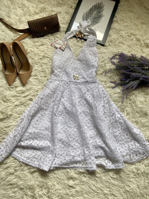 Продаю нові речі за низькими цінами. Дивись мої оголошення. Сукня макроме на підкладці. Виглядає шикарно. Ззаду на змійці. Зав'язується на шиї Можна одягати під ліфчик без брителей. Розмір XC-S