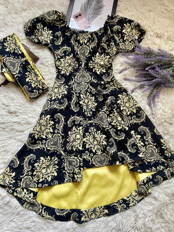 Продаю новые вещи по низким ценам. Смотри мои объявления. Платье Турция. Опускается полностью на плечи. Юбка А-симметрия, сзади шлейф. Широкий пояс. Очень яркое платье в расцветке жаккард на желтой атласной подкладке. Размер: 42-44 указан 36