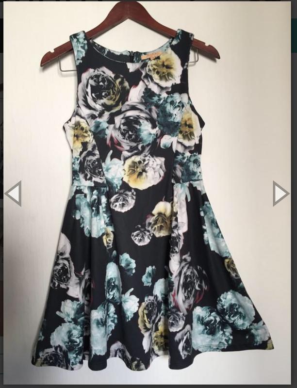 ❗️По системі «Безпечна оплата» НЕ ПРАЦЮЮ! НЕ створюйте автоматичні замовлення без мого підтвердження!❗️ Сукня квітковий принт, щільна тканина, але тягнеться, ззаду на блискавці, ліф по фігурі і клешеный низ, купляла в Іспанії. Виміри: по грудях 40, талія ( на кокетці) 37, довжина 83 см