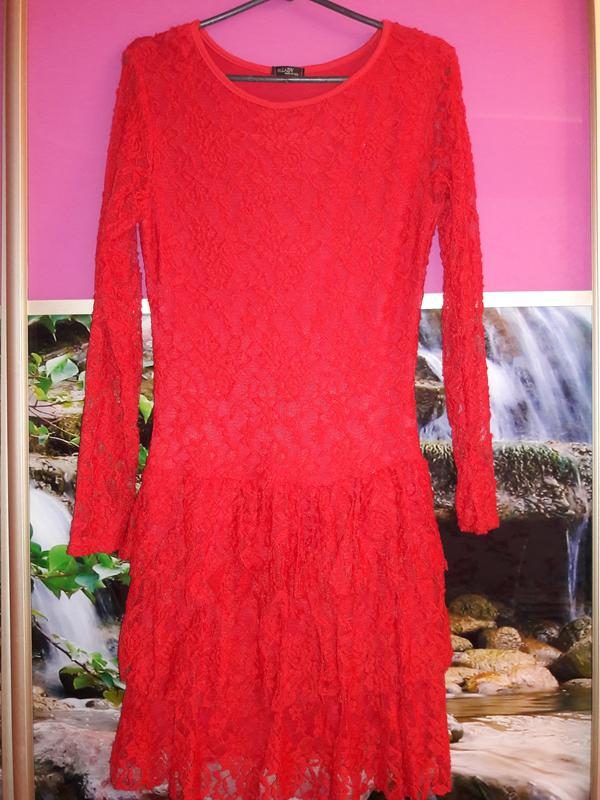 Стрейчеве платтячко червоного кольору з гипюровою кружевною сіточкою.РозмірS/ M.(Італія)Тканина тянеться.Відправляю Новою і Укрпоштою після 100% оплати на карточку.