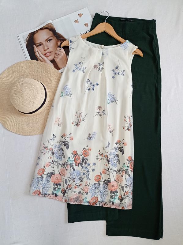 плаття з квітковим принтом від Atmosphere крою трапеція, тканина шифон з підкладкою, розмір вказано L, ПО грудей 53 см, довжина 90 см