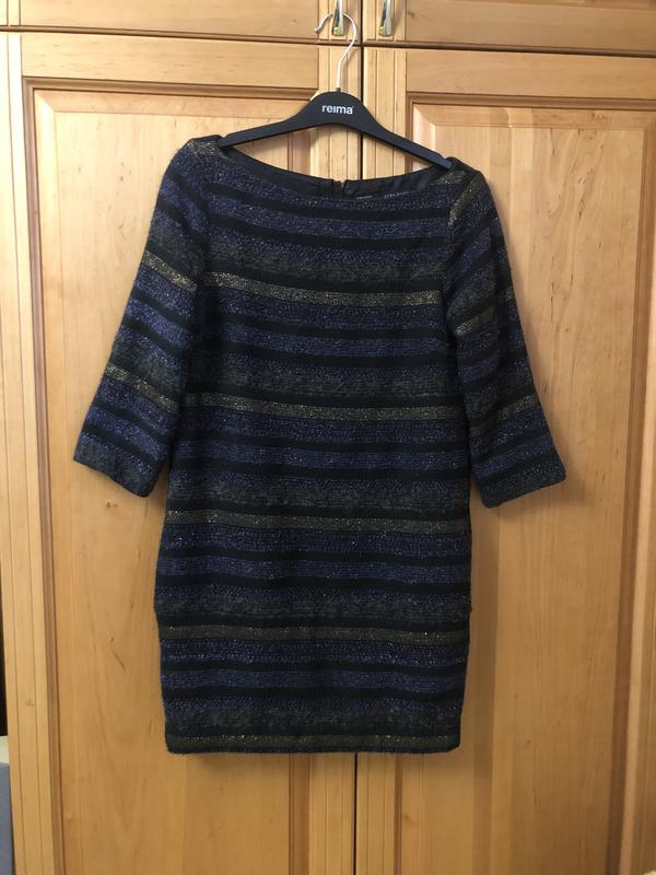 Очень красивое тёплое платье. Ткань мягкая, с блеском. На подкладке, не тянется. Рукав укорочений. Есть кармашки Замеры: Длина 80 см Ширина в бёдрах 46 см Рукав 41 см Размер S, подойдёт и на XS Состав ткани на фото