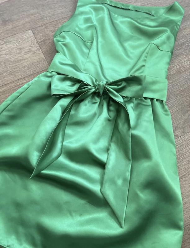Шили на заказ. Ткань дорогой атлас, цвет безумно красивый. Одевалось 1 раз, идеальное состояние без дефектов Размер S-M