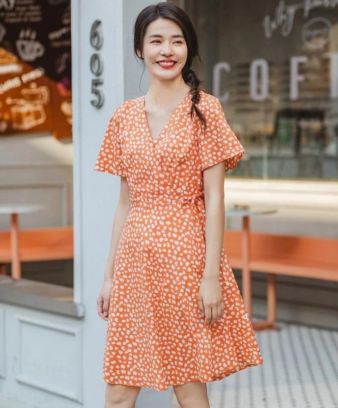 Платье летнее трапеция с v-образным вырезом и принтом