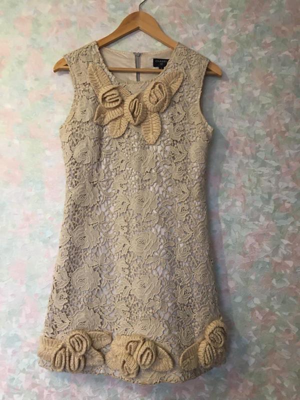 Сукня на підкладці. Позаду довга блискавка. Спинка-вовна. Попереду ажур. Виміри: напівобхват грудей – 44 см, напівобхват стегон – 48 см, довжина – 80см.