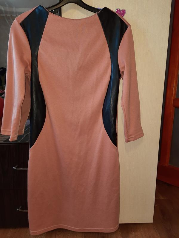 плаття з рукавом 3/4, в нормальному стані, трохи покошлатилось, вставки кожзам не потресканые,плаття тягнеться, розмір 42, напівобхват грудей 40 см, довжина по спинці 83 см, рукав-42 див. відправка по повній передоплаті укр або новою поштою