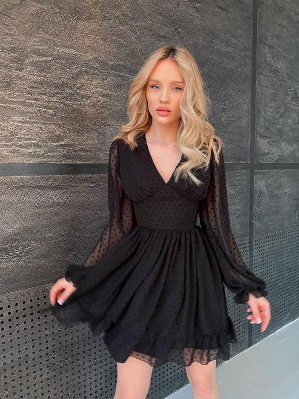Платье с пышной юбочкой и обьемными рукавами🌟h Арт 12868 ▫️Размер: ONE-SIZE S/M,ONE-SIZE M/L ▫️Ткань: сетка флок, софт