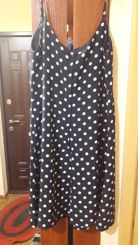 Супер платье в горошек, на брительках, одето один раз на корпоратив. Длина с бретельками 90 см, ширина в груди 44-45 см. В талии и по бёдрам оно свободное