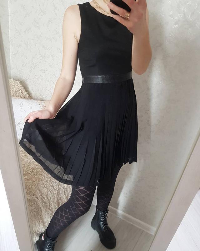 Шикарна плісерована сукня зі вставкою шкірзаму від H&M Стан - ідеал Розмір - 38 М Довжина - 88 см Довжина плеча - 5 см Пів-обхват по грудям - 42-46 см Пів-обхват по талії - 38 см Пів-обхват по стегнам - вільні З підкладкою 60%віскоза, 37%ПЕ, 3%еластан Мої параметри: 170 зріст/90/72/98 см
