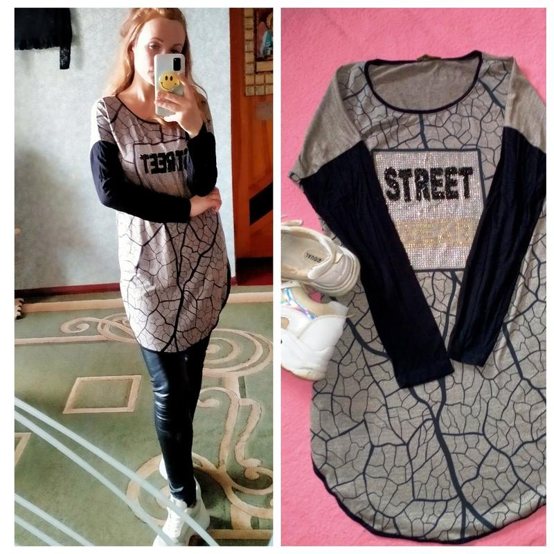 Модное платье -туника со стразами . Ткань качественная не сворачивается. Размер М.Тянется.
