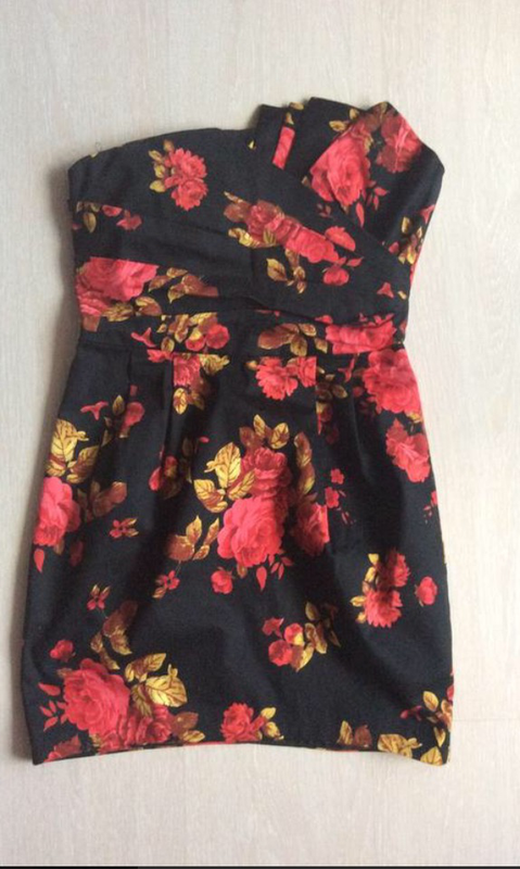 Плотное платье, сзади на змейке с необычным фасоном, хорошо держит грудь.