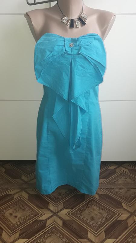 Стильное платье с шикарным бантом,сбоку замок, на груди резинка,держит хорошо,не носилось, распродажа