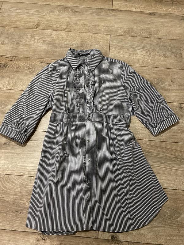 на фото падает тень справа,классное коттоновое платье рубашка на пуговичках, сзади пояс.очень стильное