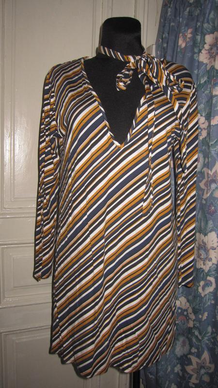 Туника полосатая,95 вискоза,5 эластан,размер 12,ПОГ 53.ПОТ 50.ПОБ 56.,длина 87см.длина рукава 57см
