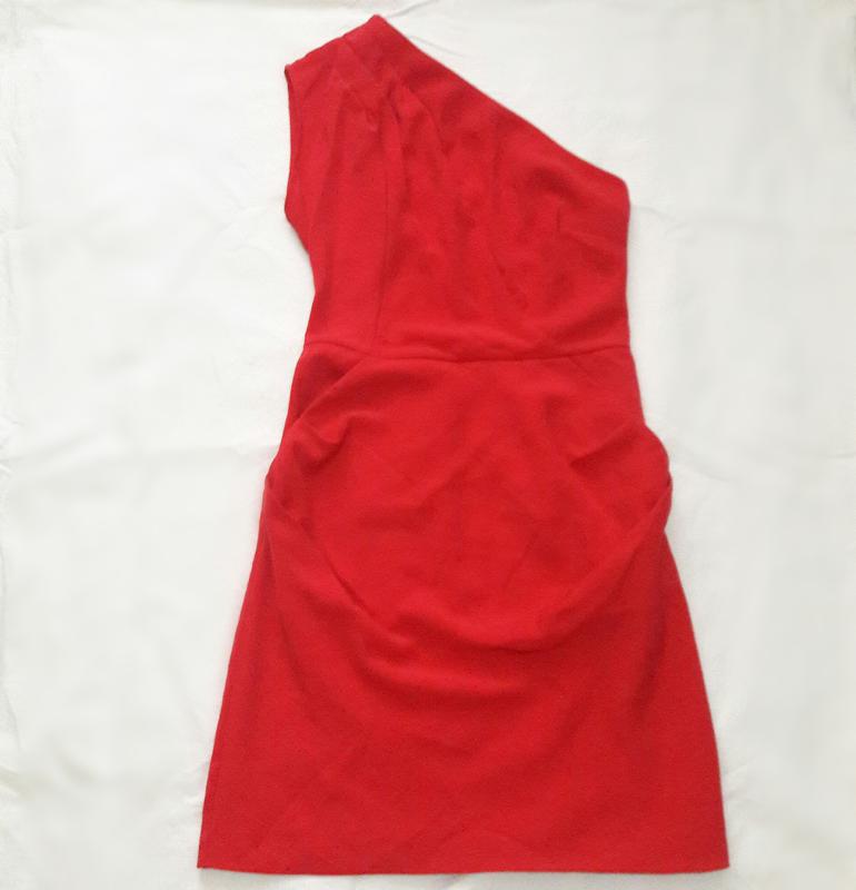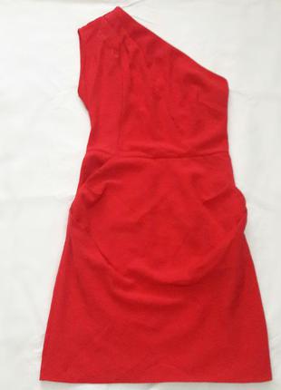 Летнее платье малинового цвета на одно плечо с карманами. Размер S. Цена 180грн.