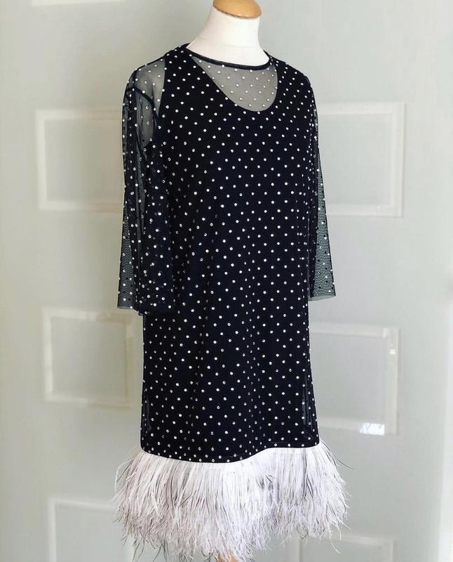 Платье инд.пошив •перья •сетка со стразами •одето 1 раз •one size •100$