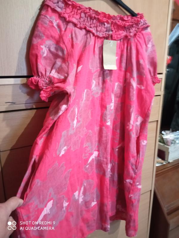 привезенное из Италии новое, крой трапеция, с карманами в боковых швах, с резинкой у горловины, можно спустить и будет открытое декальте, рукав фанарик, бомба на лето...