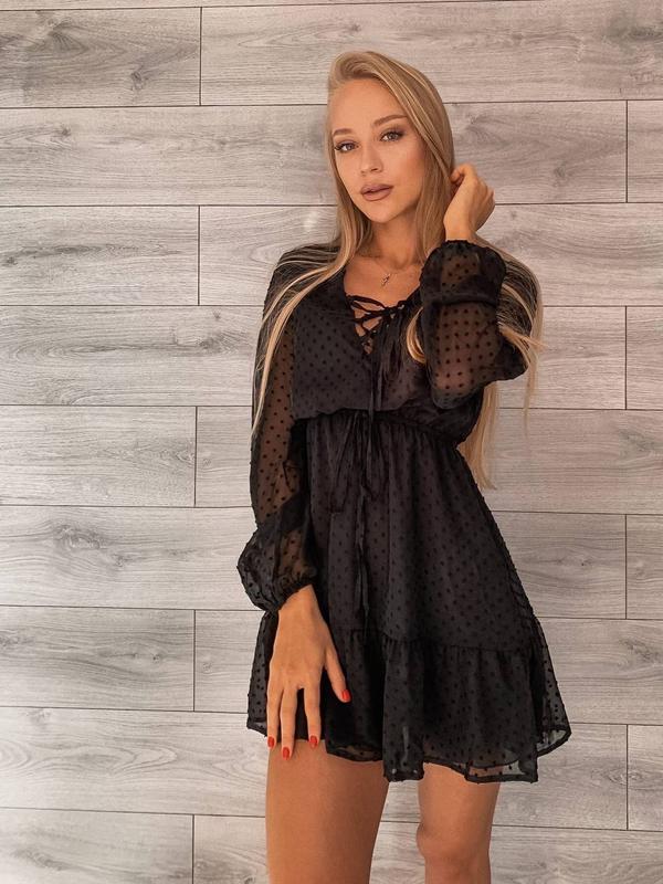 Платье Мод 150АЛ Ткань - шифон горох + подкладка Размеры - 42-44 и 44-46 Цвета - белый Пояс на резинке, вырез можно регулировать шнуровкой