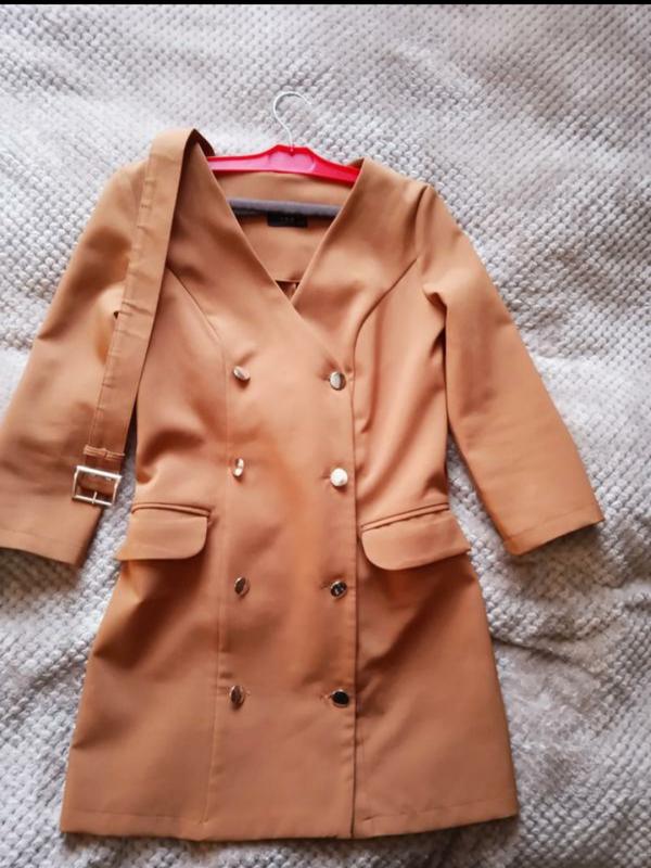 Плаття- жакет, розмір м, хороша тканина не тоненька, трошки тягнеться, пояс в комплекті, вживу колір трошки насиченіший аніж на фото, відправлю поштою. Довжина 81 см Рукав 46 см Плечі 38,5 см Півобхват талії 38 см