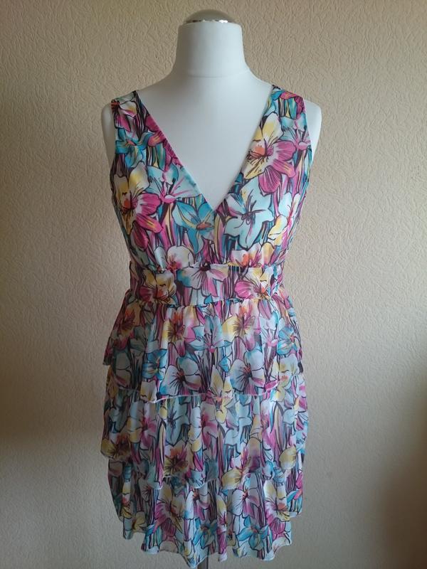 Платье-Сарафан воланами с цветочным принтом, ткань мелкая сеточка, размер 44-46р. есть подкладка.