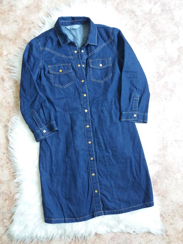 Джинсовое платье-рубашка на кнопках. Длина 85 см, в т.ч. от плеча до талии 39 см, пог 46 см, пот 39 см, поб 49 см. ширина плеч 47 см, длина рукава 46 см. (Арт. кд8)