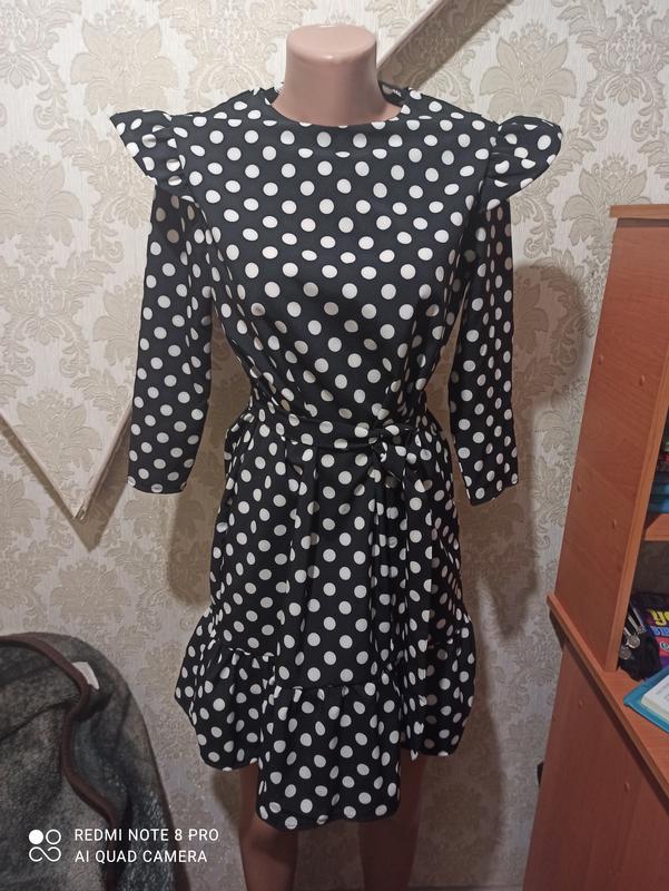 Красивое,стильное платье в белый горох.Ткань софт качества люкс.