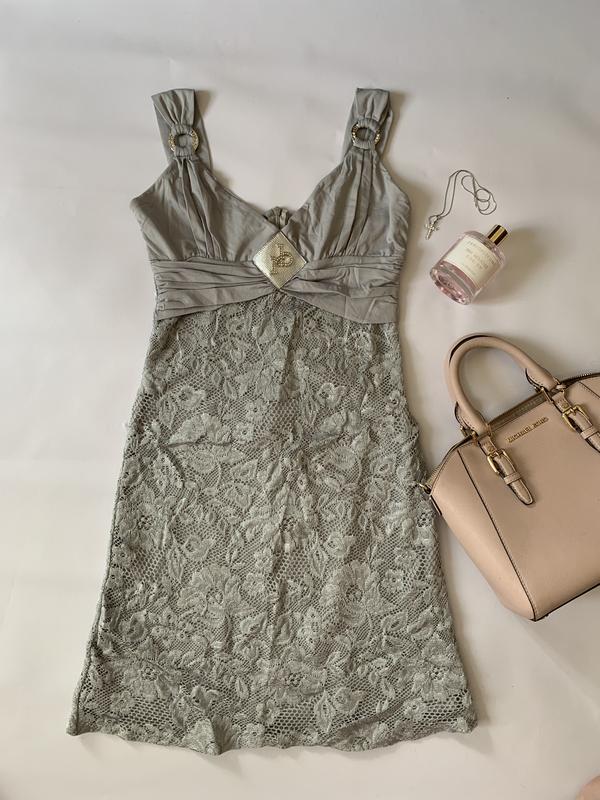 Фирменное платье лимитированной коллекции roccobarocco,вверх стрейчевый выгодно подчеркнёт декольте,низ стрейчгипюр.на подкладке.серый цвет с стальным отливом.размер м