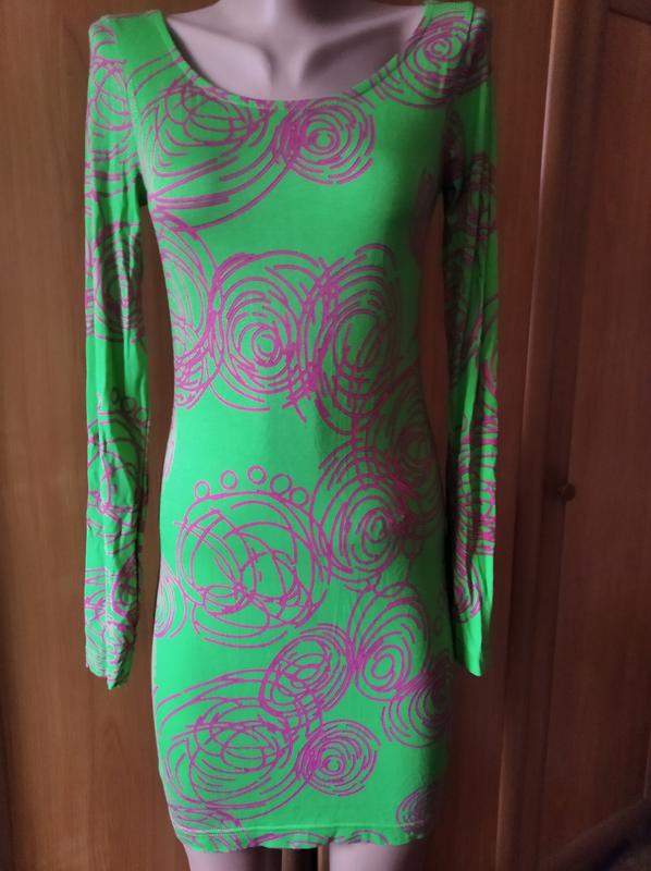 лёгкое платье красивого салатного цвета с ярко розовым рисунком.очень мягкое, тянется и идеально садится по фигуре. замеры по требованию.