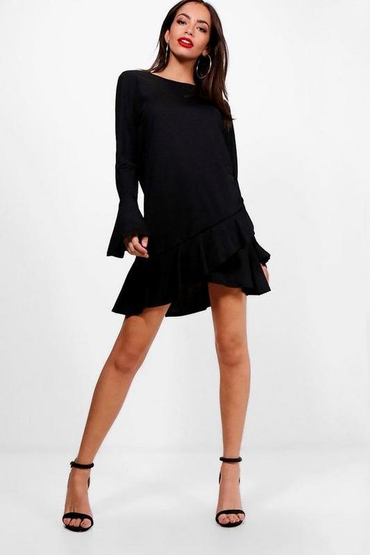черное платье с рукавами от Boohoo. Смотрится очень женственно, красиво, стильно и дорого!
