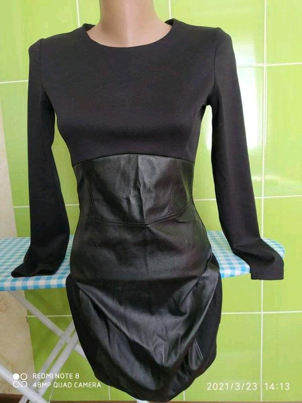 Ідеальне плаття чорного кольору з вставками із екошкіри. Добре сідає на розмір с. Було одягнено декілька разів. Без дефектів.