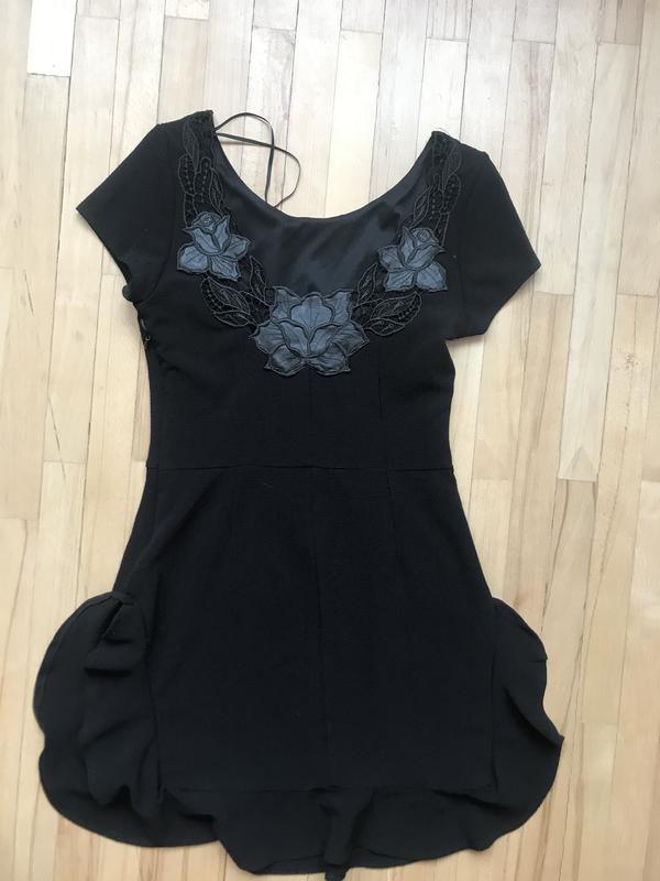 Чорне плаття з квітами зі шкіри