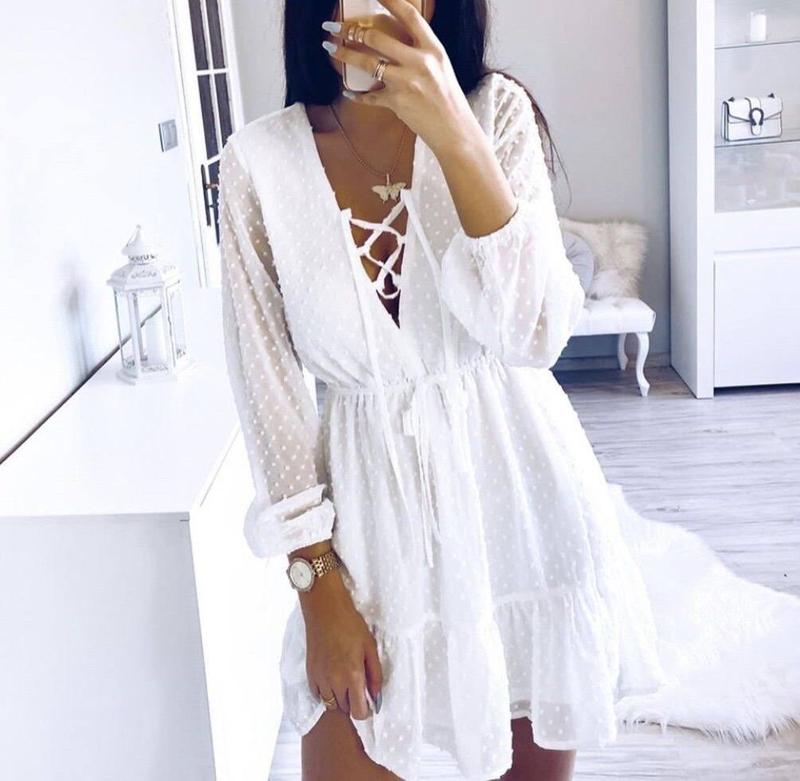 💓В наличии 🌸 Модель 150(лонд) ▫️Ткань - шифон горох + подкладка ▫️Размеры - 42-44 и 44-46 ▫️Цвета - белый и чёрный ▫️Пояс на резинке, вырез можно регулировать шнуровкой