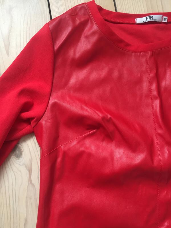 Яскраве плаття, спереду якісний замінник шкіри, рукави та зад - цупкий шифон. Йде на розмір S