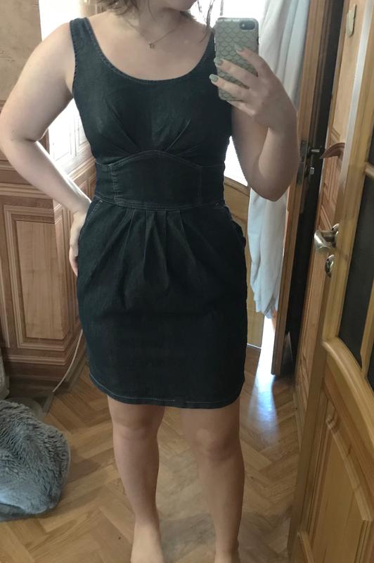 Платье по фигуре с карманами. Замеры есть на фото ( тянется на 2 см) Под мышками чуть потеряло цвет