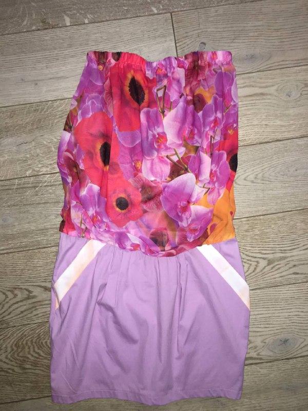 Сиреневое платье бандо от H&M. Верх шифон, юбка котон., есть кармашики по бокам. Очень яркое и стильное. Состав: 80% котон и 20% эластан