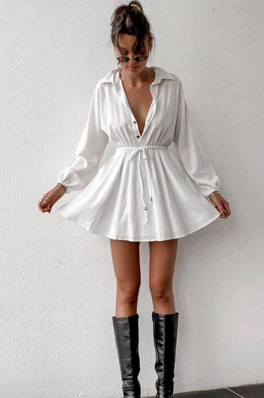 Платье Мод.077АВ Ткань: лён (приятный на ощупь, мягкий) Цвет: белый Размеры: 42-44, 46-48 Тёплые дни уже очень близко Будь самой нежной, а мы тебе в этом поможем Наше легкое, воздушное, сексуальное платье не оставит вас без внимания Идеальный вариант как для прогулки, так и для вечернего выхода Пояс на затяжке, рабочие пуговицы. Длина 82 см
