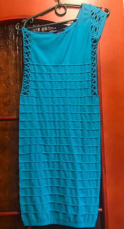 Яркое платье насыщенного голубого цвета, фото цвет не передает в точности. Состав: 92% - нейлон, 8% - спандекс. Очень хорошо тянется. Длина - 82см, пог - 33см. Новое, идет без бирки.