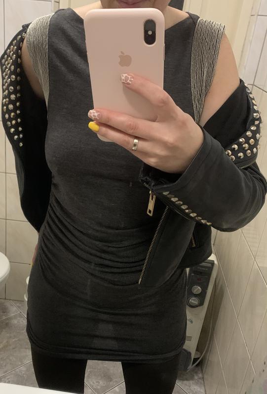 Очень стильно выполнено с плечами расшитыми бисером.Сои параметр:99-73-96.Рост 173
