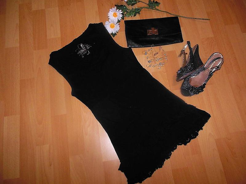 МАЛЕНЬКОЕ ЧЕРНЕНЬКОЕ ПЛАТЬЕ МАЙКА С ПРОШВОЙ.можно как тунику под лосины или для девочки подростка на рост до 160см. рр универсальный смотрите по замерах описано в свободном и на сколько модель тянется длина-70см пог-34(51см) пот-32(50см) поб-35(55см)